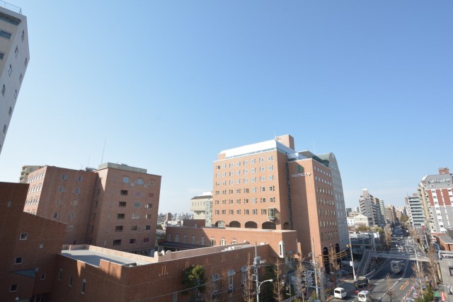 本郷通りに面した向かいには文京学院大学があり、ある程度抜けた眺望です。