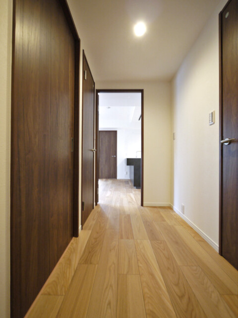 玄関・廊下は木目を生かしたナチュラルな雰囲気。自然の木目って温かみを感じていいですよね♬ 一般的なマンションに比べて廊下の幅も広くとられたゆとりのある造りになっています。