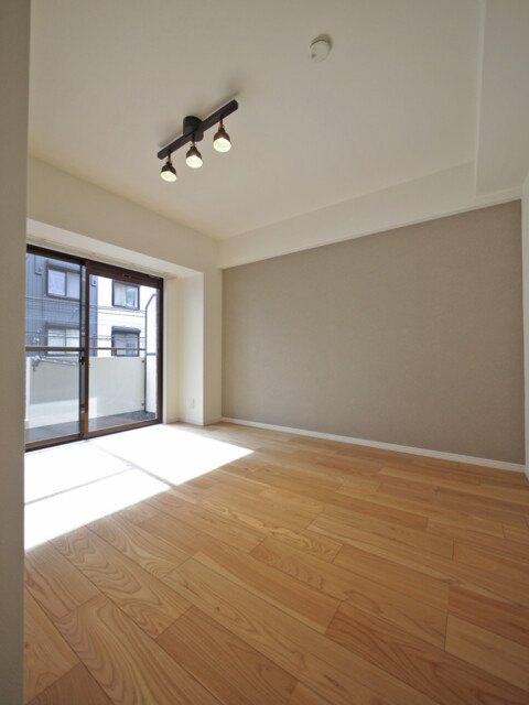 LDK隣接ですがしっかり独立感がありメインのベッドルームにお勧め。グレーのアクセントクロスで落ち着いた雰囲気になっています。グレーはインテリアの邪魔をしないのがいいですよね。西向きのバルコニーに面した明るいお部屋です。