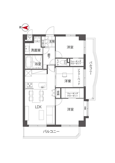 最後にLDKと西側洋室から出られる西向きバルコニーをご紹介。