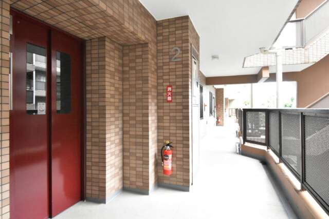 エレベーターで2階まで上がり外廊下を進んでお部屋へ向かいます。今回はエレベーターを使いましたが、健康のために階段を使うのもいいかもしれませんね。