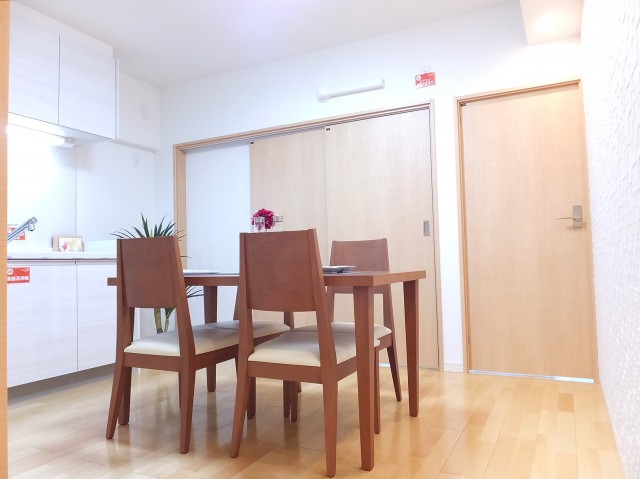 扉をあけてダイニングと洋室をつなげたところ。つなげて使ったり、独立させて使ったりと生活スタイルに合わせてフレキシブルにご利用いただけます。