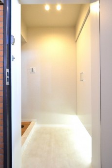 お部屋は11階。玄関まわりも外観と同じ色合いのタイル貼りになっています。