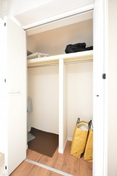 幅がありハンガーポールが真ん中で分けられ使いやすいクローゼット。