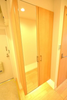 左側に全身鏡付きの大きなシューズBOXがあります。