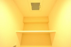 後ろに棚があるので、トイレットペーパーのストックを置いたり