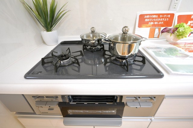 お料理好きな方には嬉しいグリル付き3口コンロ。