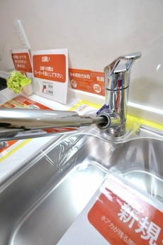 浄水機能付き水栓。ヘッド部分も延びるのでシンクの隅々まで洗い流せます。