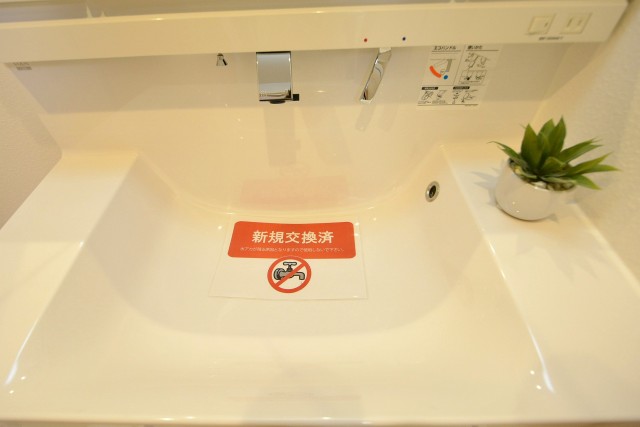 カウンター幅が広く使いやすい洗面台はシャンプードレッサータイプ。