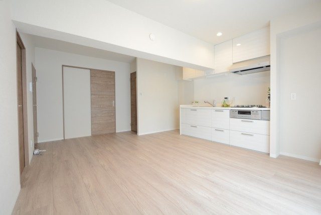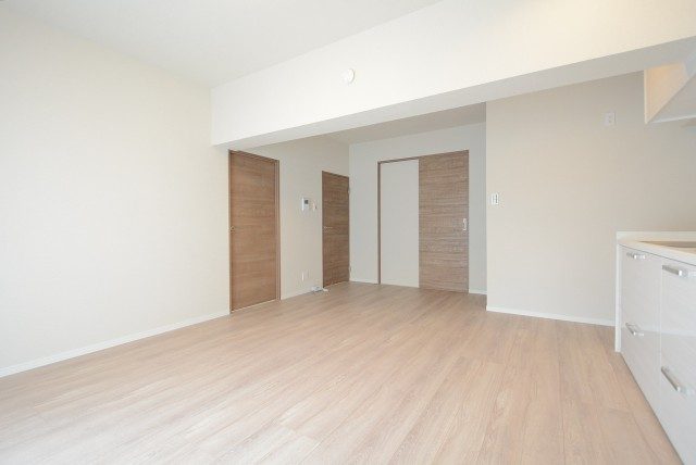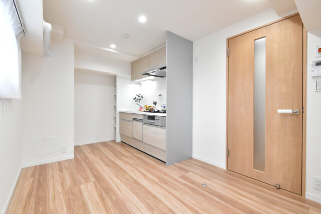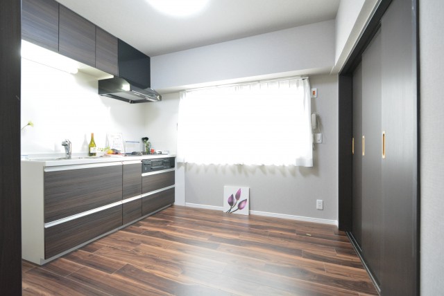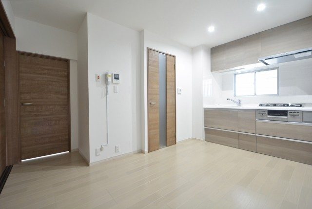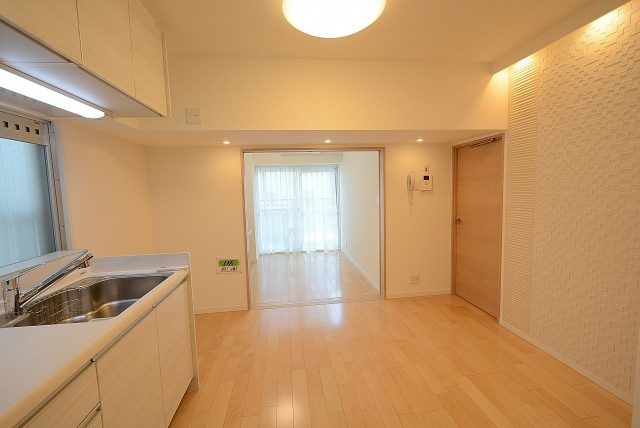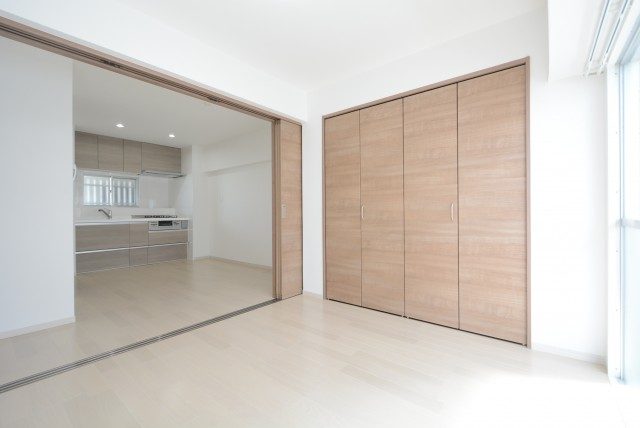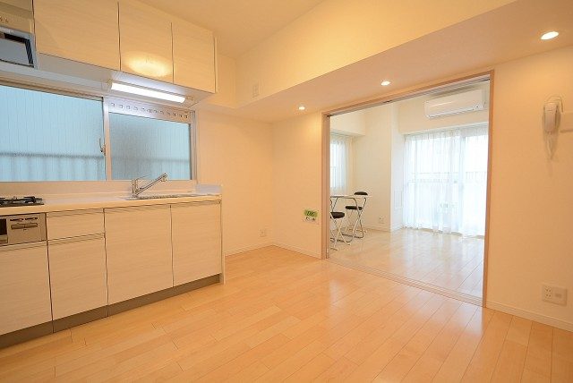 ダイニングキッチンと洋室の間には引き戸が設置されています。