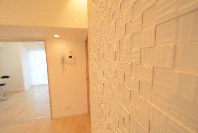 壁面にはライディングレールで照らされたデザインタイルが貼られていてオシャレな空間になっています。