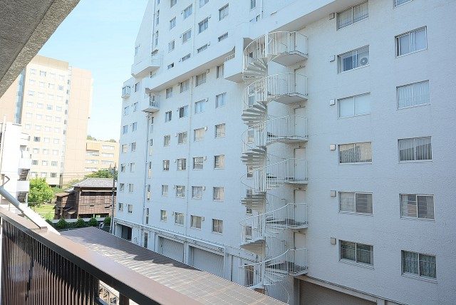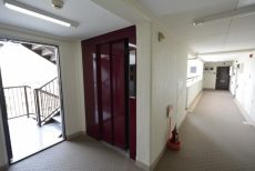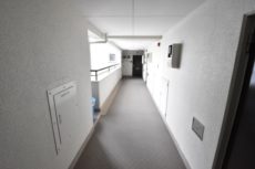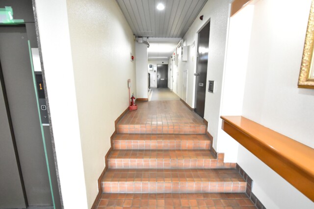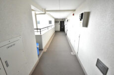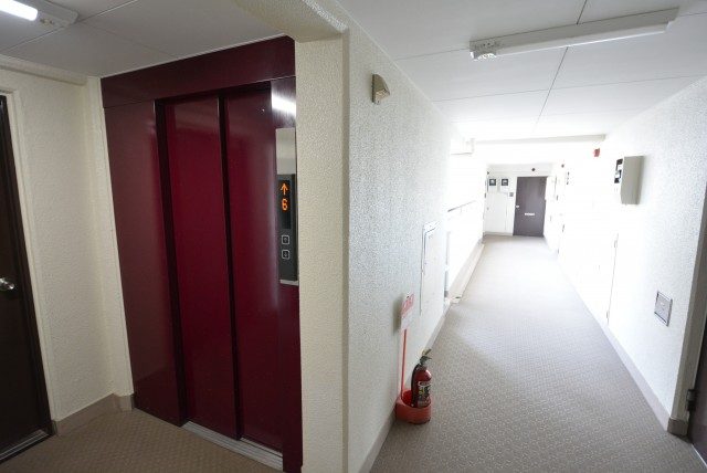 エレベーターで8階までやってきました。共用廊下は外廊下です。