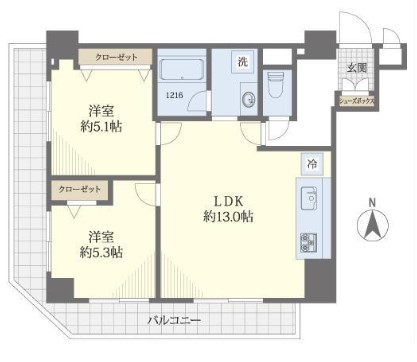 洋室2部屋をつなぐバルコニーは約6.30㎡。