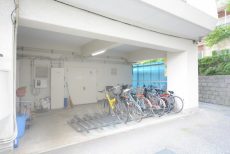 裏へまわると駐輪場がありました。屋根付きで自転車に優しいですね。