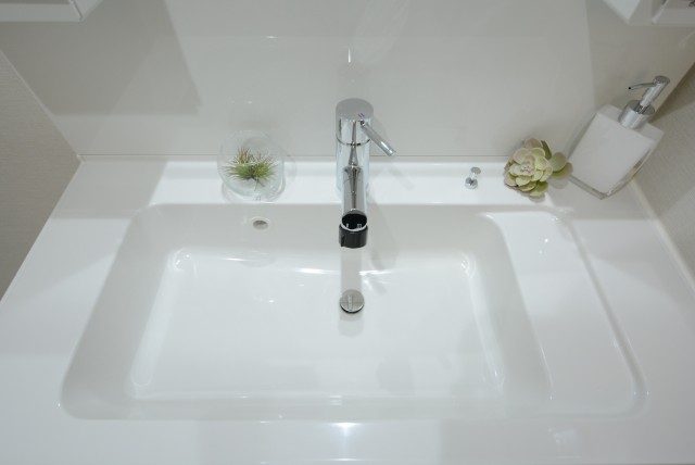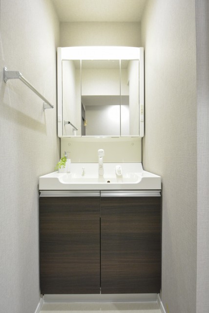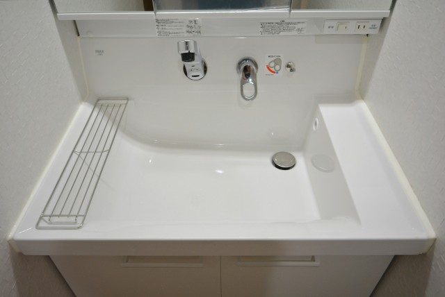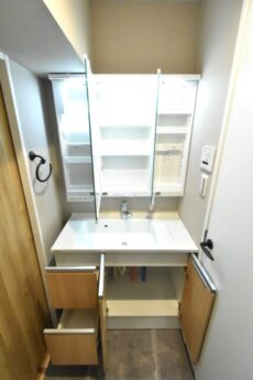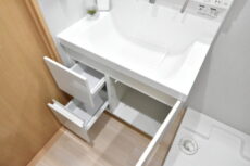 洗面化粧台です。シンプルでスッキリとしたデザインです。