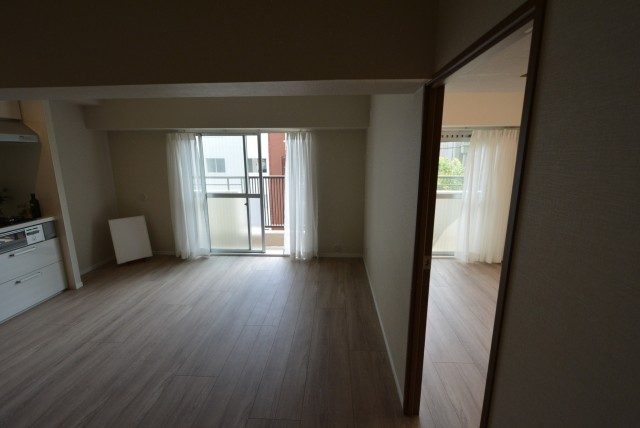 こちらがダイニングキッチン約7.1帖、その先に約5.4帖の洋室が見渡せます。