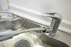 キッチンの水栓は浄水器一体型。ワンタッチで浄水に切り替えられるので、お料理にも気軽に使えて便利です。