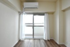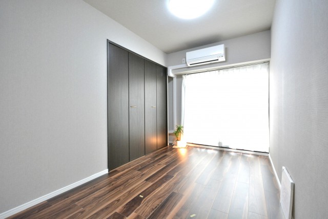 西向きに面した約4.5帖の洋室。エアコンンも設置済み。
