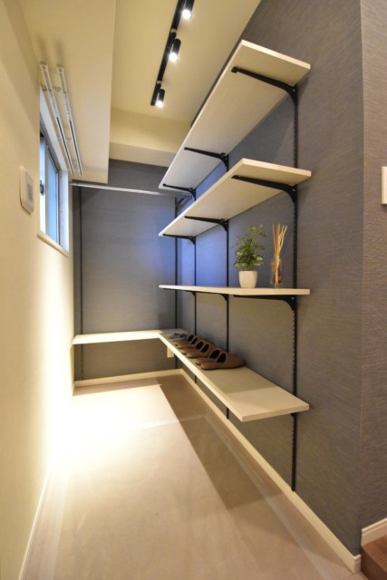 シューズボックスは上部がカウンター状になっているので、観葉植物やオシャレ小物等のインテリアでセンス良く飾り付けしたいですね!!