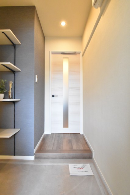 トイレのさらに玄関側にも扉がありました。こちらもトイレ同様、廊下との間の床に段差がありますのでご注意ください。