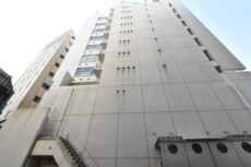不忍通り沿いに建つ白い外観のマンションです。