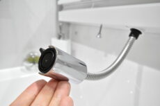 シャワーヘッドはスライドバーに設置されており、高さ調整が自由自在です。