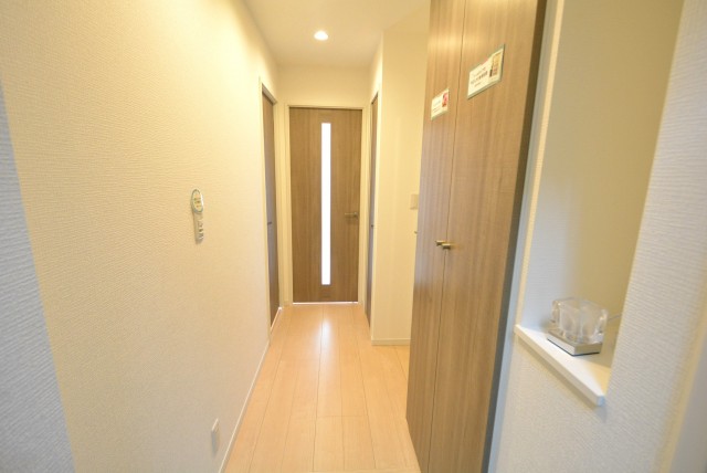 エレベーターを降りて左手のお部屋が今回ご紹介させていただくお部屋。インターフォンもTVモニター付きです。