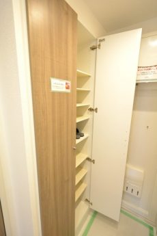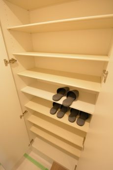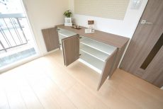 玄関の左側にはトールサイズのシューズボックスがあります。可動式の棚でブーツの収納もOK♪♪大容量ですので、玄関に靴が溢れることは無いと思います。
