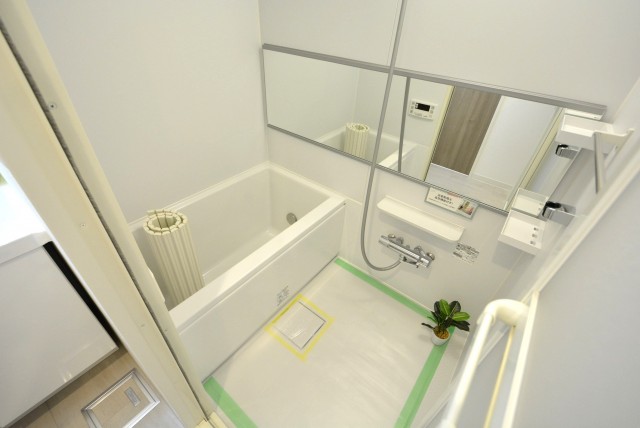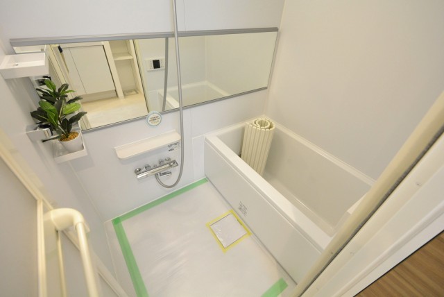 新規交換済みのユニットバスはピッカピカ。清潔感のあるホワイト基調です。