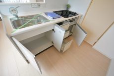 収納はシンク下に。収納が少し少ないので、後ろに食器棚を用意しましょう♫