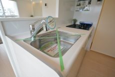 コンロは3口、ワークトップも広々です。キレイなキッチンでお料理も楽しくできそうです。