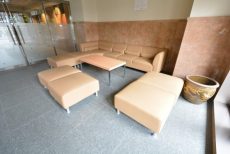 こちらは、エントランスホール奥の共有スペースです。ソファもありましたし、冷房も設置されていましたので、使い勝手の良さそうな共有スペースです。