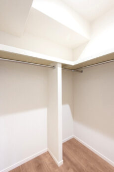 北東向きの大きな窓が付いています。廊下に面していて独立性が高いので、年頃のお子様が欲しがりそうなお部屋ですね。収納はオープンタイプのウォークインクローゼット!!L字型にハンガーポールが付いた大きな収納です。扉が無いので通気性も良く、湿気が籠ったりすることもありません。ただし、半分くらいは中が丸見えなので、ある程度は綺麗にしておきたいところです(^-^;