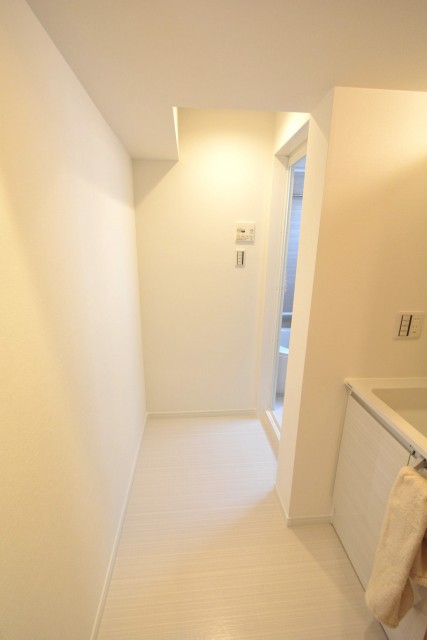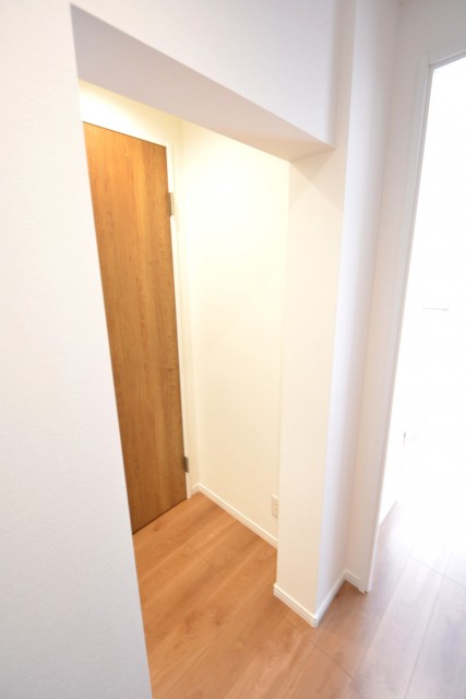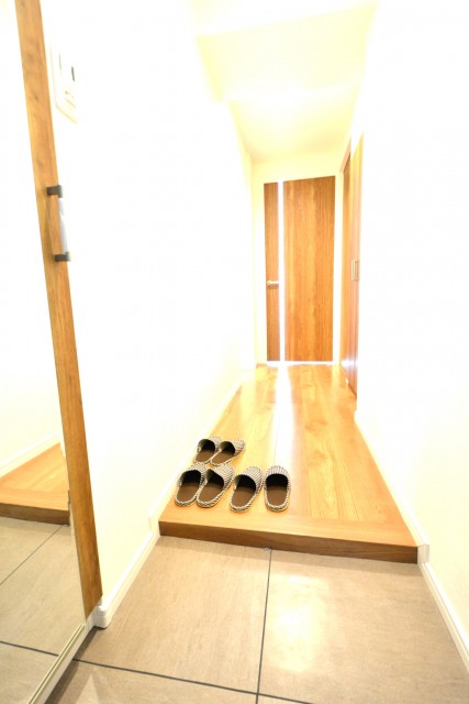 玄関はコンパクトながら、収納力のあるトールタイプのシューズボックスが付いているので靴が玄関に溢れるなんて心配もはありません。ただし、自動で収納されるわけではないのでちゃんと片付けましょうね(笑)廊下にはガラス張りの気になるお部屋が…