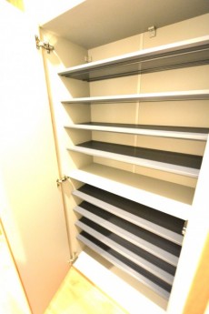 外側が姿見の鏡になっているシューズボックスの他に、廊下の反対側にもう一つシューズボックスが設置されています♪♪収納力◎