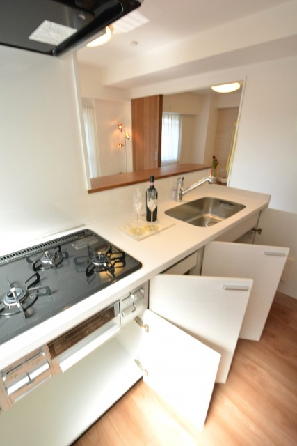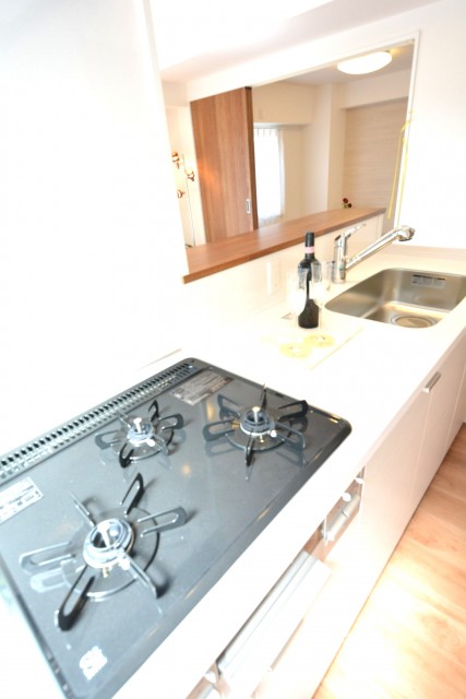 白を基調としたシステムキッチンです♪♪ガスコンロは3口なのでお料理もはかどります♪♪