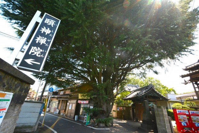 みかどパン店前のヒマラヤ杉はここ一帯のランドマーク。もともとはご主人が育てていた鉢植えだとか(笑)