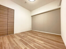 唯一廊下に面し、LDKを通らず出入り出来る独立性の高いお部屋です。北東向きとはいえ、明るい外廊下に面しているので暗い感じもありませんね。収納はフルオープンになるクローゼット。
