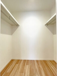 こちらのお部屋の収納は容量豊富なウォーククローゼット。照明付き!
