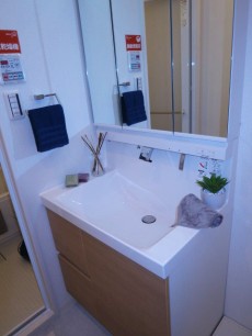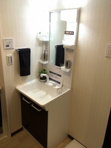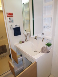 【洗面室:三面鏡付き洗面台・洗濯機スペース】