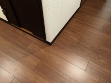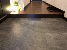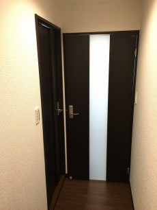 さっそくお部屋の中へ。リノベーションを終え、生まれ変わった玄関がお出迎えです。落ち着いたトーンの廊下がすらっと続いています(o´∀`ノ玄関照明は人感センサーになっているので節電はもちろん夜間のお帰りの際も便利です。