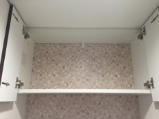 ウォシュレット付のトイレは、上部に棚板が設置されているので生活用品のストック