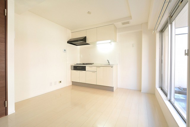 先程と同じバルコニーに面しています。洋室とはちょうど同じ大きさながら、キッチンがある分狭く感じますね。とはいえダイニングだけなら余裕ですよ。