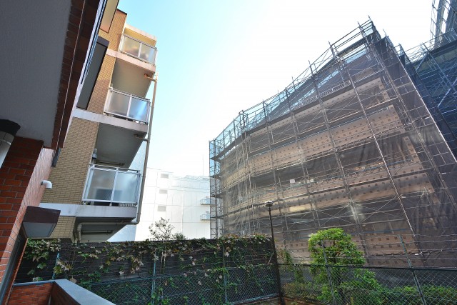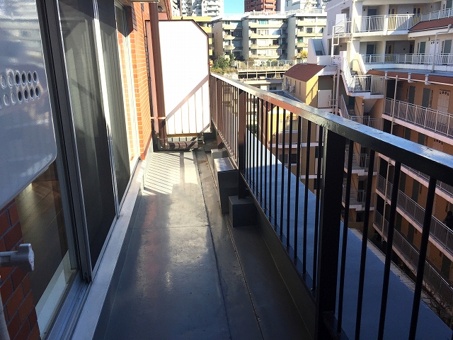 目の前のマンションのバルコニーがずらっとこちらを向いています。ルーフバルコニーといえば、デッキチェアーを持ち出して日光浴をしながらビールといきたいところですが、ちょっと人目が気になるかもしれませんね。
