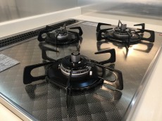 3つ口コンロはお料理好きの方には嬉しいですね♪シンクは大きめで使い勝手◎