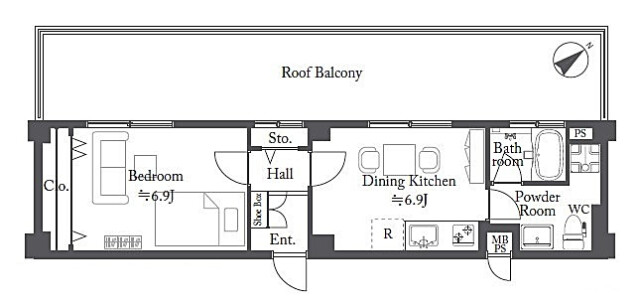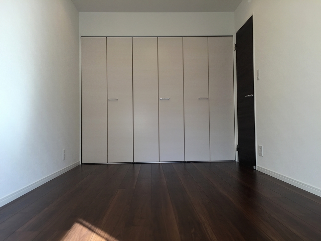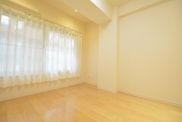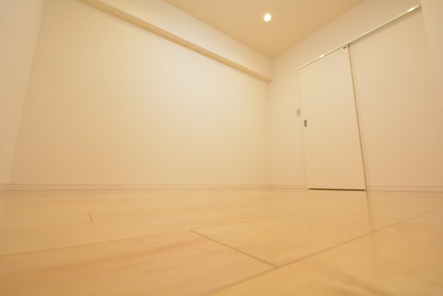 北西向きルーフバルコニーに面したお部屋です。このサイズのお部屋でこの広さの洋室は珍しいですね。ベッドの他にもデスクや小さめのソファーなども置くことが出来そうです。シンプルな色使いなのでカーテンや家具が合わせやすく幅広く選ぶことが出来ますよ。