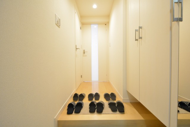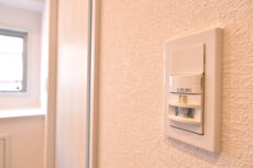 玄関ドア横にはモニター付きインターホンが設置されていて、お部屋の中から訪問者を確認することが出来ます。「ハイ」と返事をする前に映像でチェックをすればしつこいセールスにつかまることも無くなりますよ。