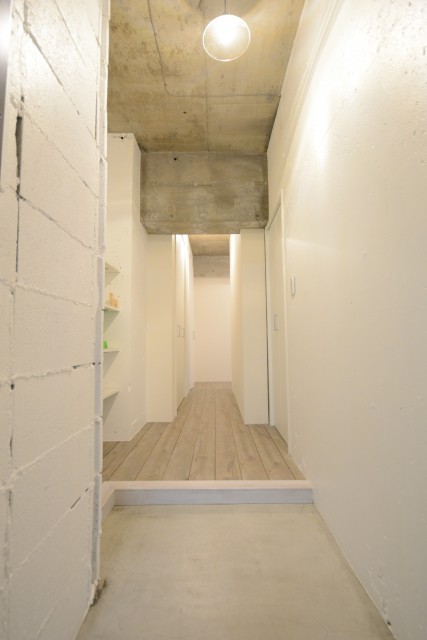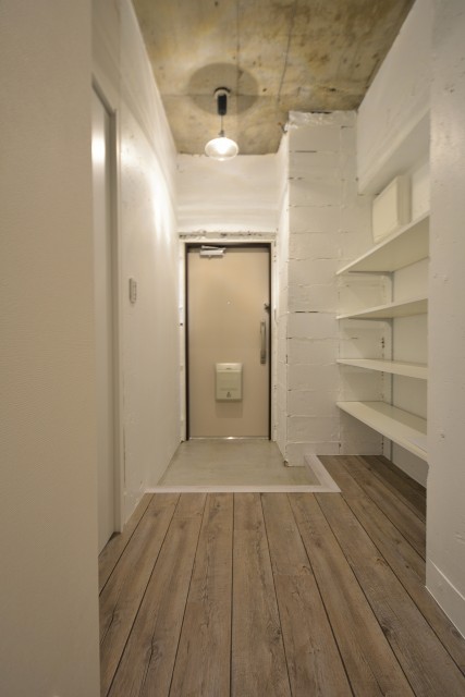 共用廊下は内廊下。雨風の影響もなくプライバシーや防犯面でも優れています。個人的にはこのシ~ンとした感じが好きなんですよね。