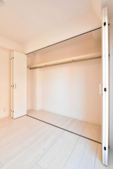 収納は壁一面を使った大きなクローゼット。全開になるので中が一目で確認出来てとても使いやすそうですね。