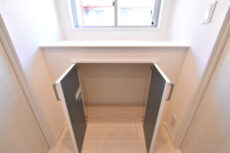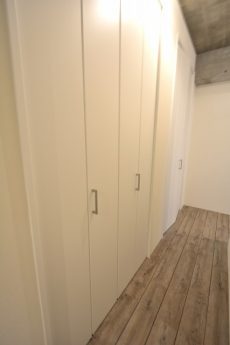こちらは廊下右手の納戸です。収納が多いと生活スペースが大きくなるので本当にうれしいです。